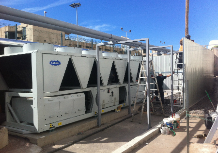 Actuación: Sustitución de plantas frigoríficas, producción de ACS, reforma integral de sala de máquinas, cerramiento acústico y automatización.